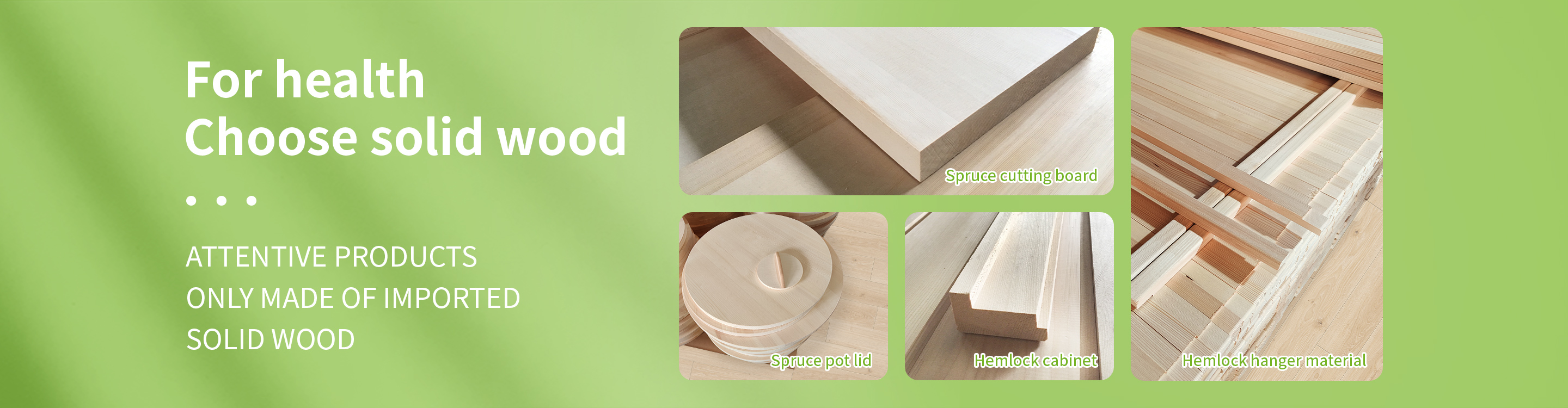 Customized products: Spruce cutting boards, pot lids, lamps; Hemlock wall panels, storage cabinets, etc.